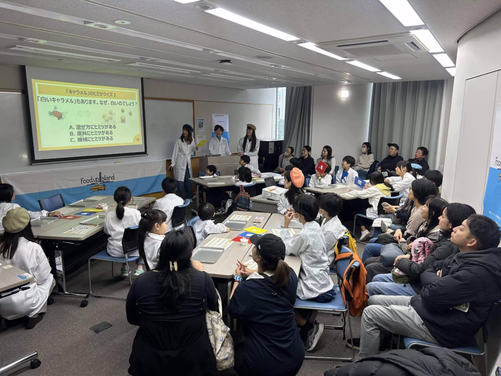 2025年10月25日・26日に国立オリンピック記念青少年総合センターで開催された「秋のキッズフェスタ2025」に、Food Up Islandの「キッカケミライ」チームが参加し、26日(日)の1日限定でワークショップ 「食品メーカー研究員と学ぼう!お菓子や食品のヒミツ発見!」 を実施しました。